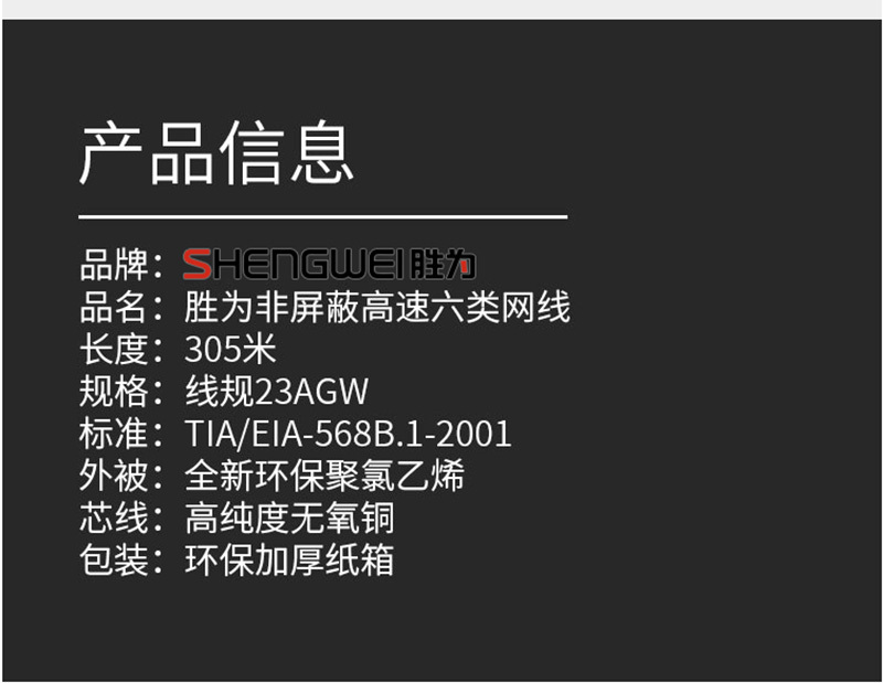 305m蓝色箱六类SHENGWEI/胜为CLC-6305工程六类网线-蓝色 线径0.57mm 305m