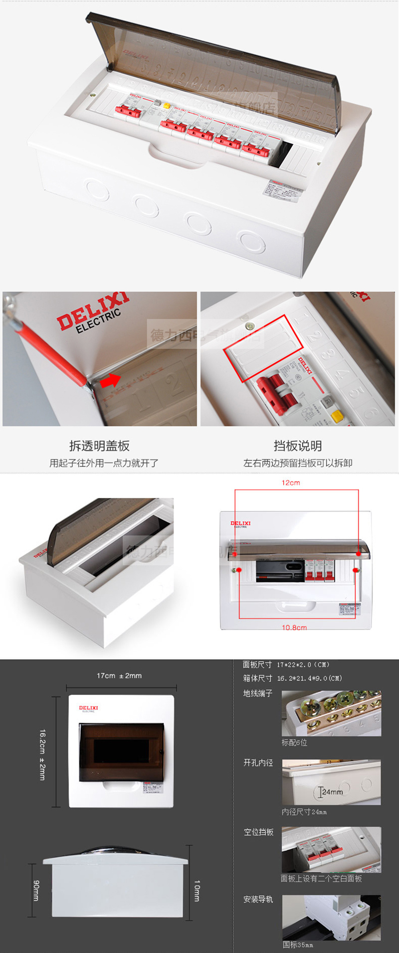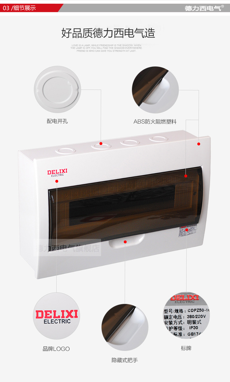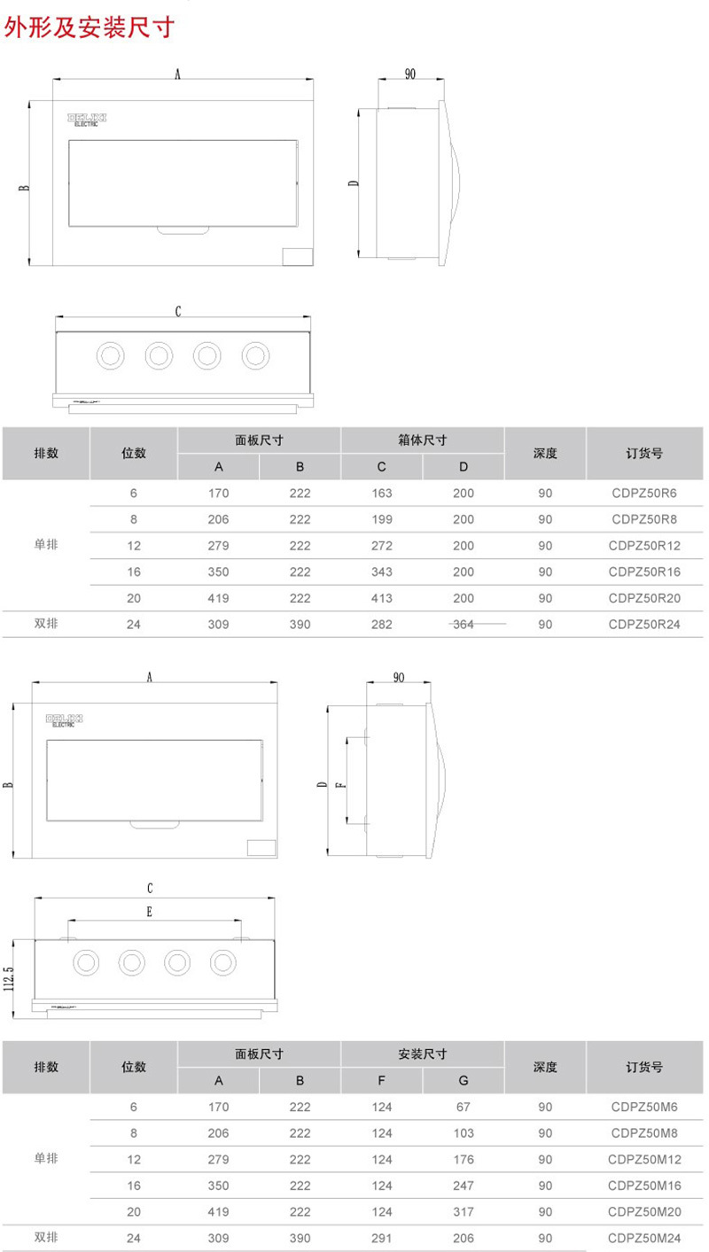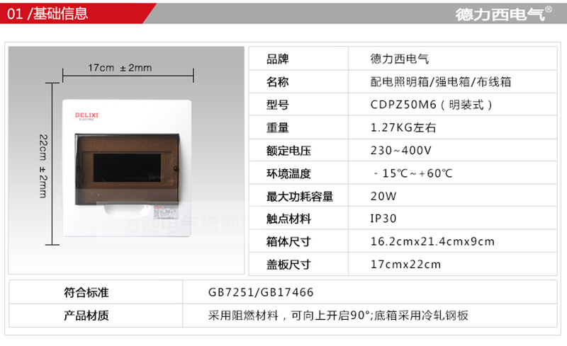 PZ50-6回路(明装式 标准型)6DELIXI/德力西CDPZ50 照明配电箱CDPZ50系列-面板为阻燃工程塑料 底箱为冷轧钢板材质
