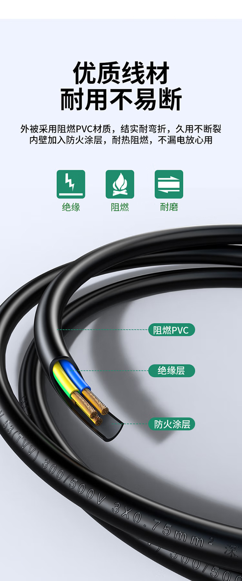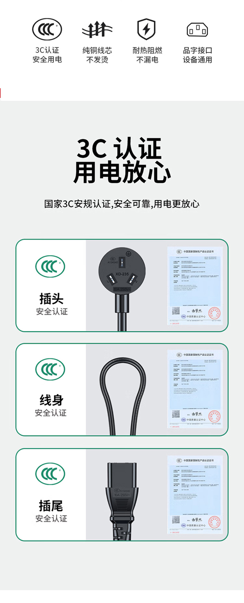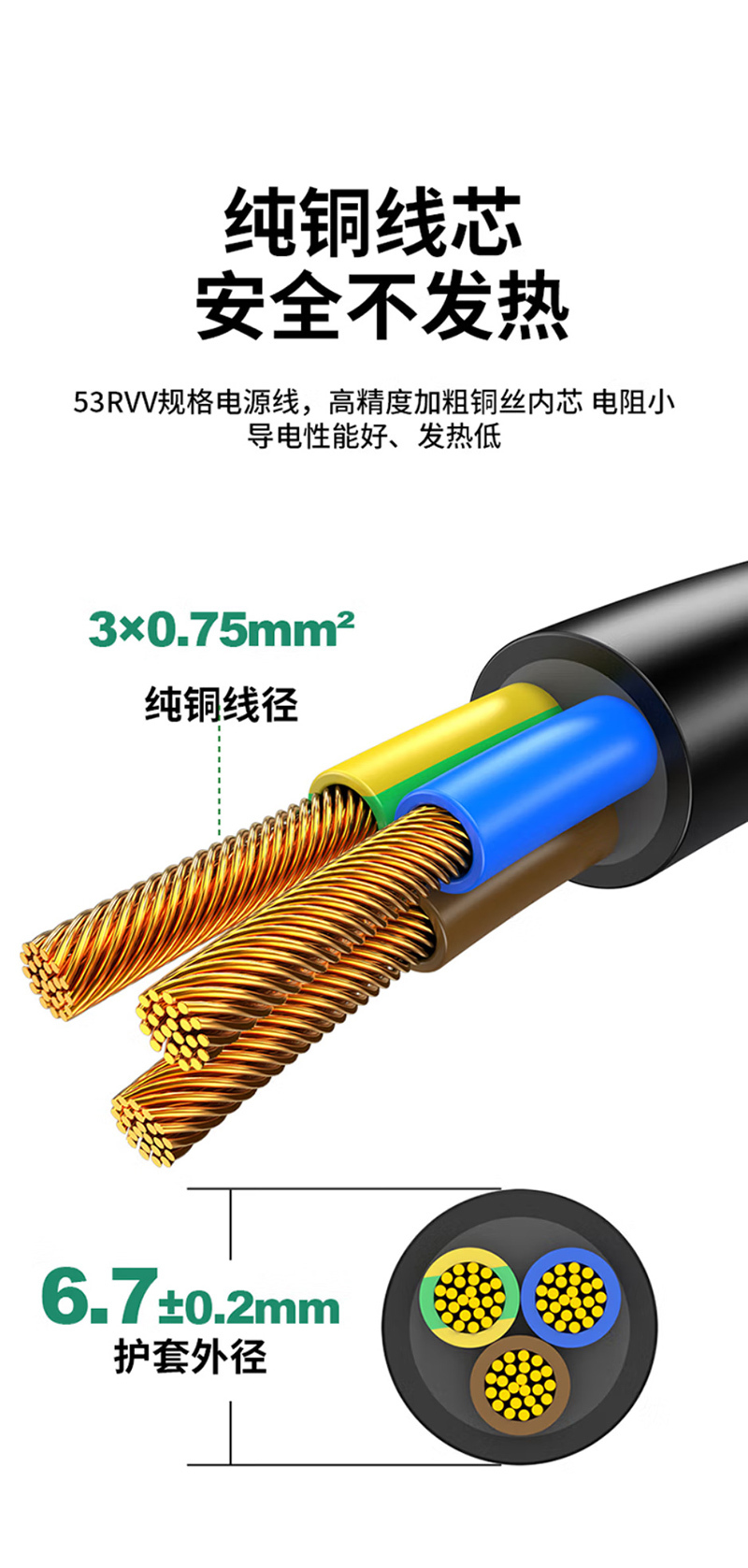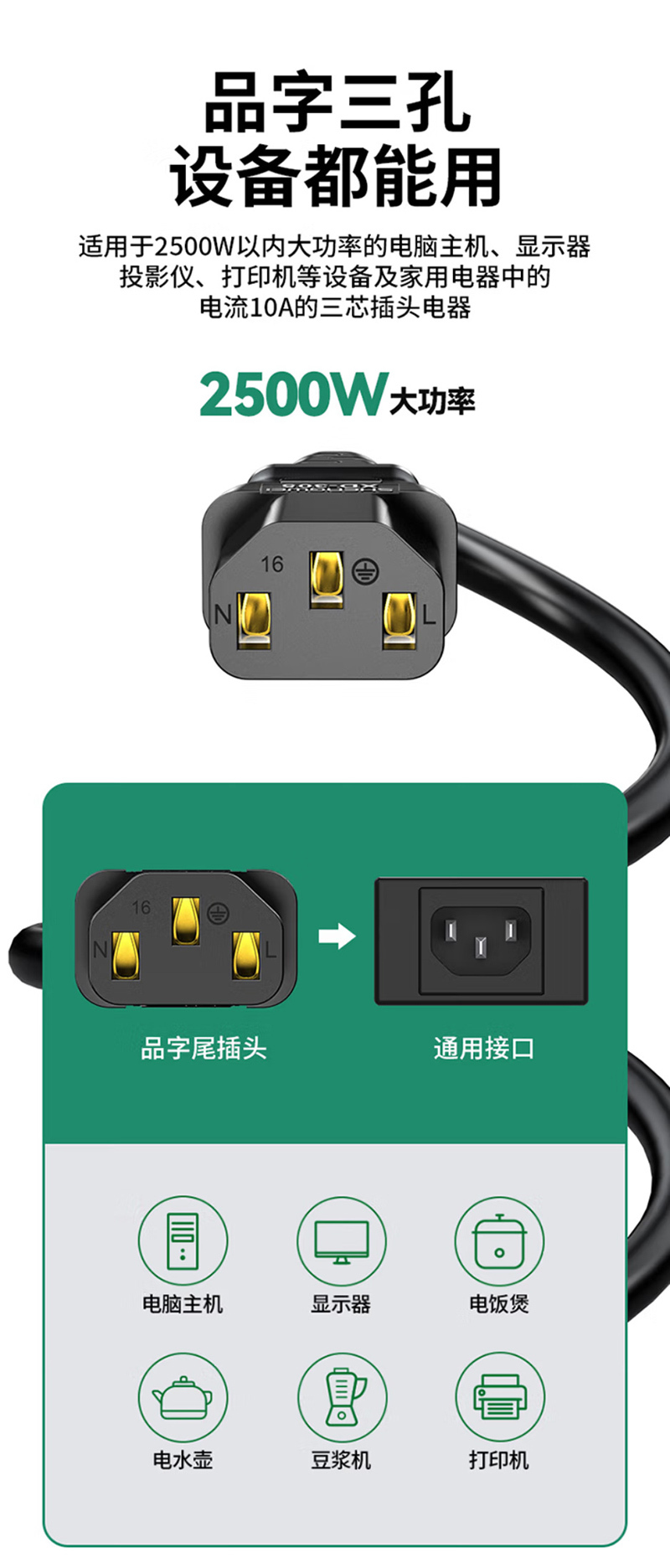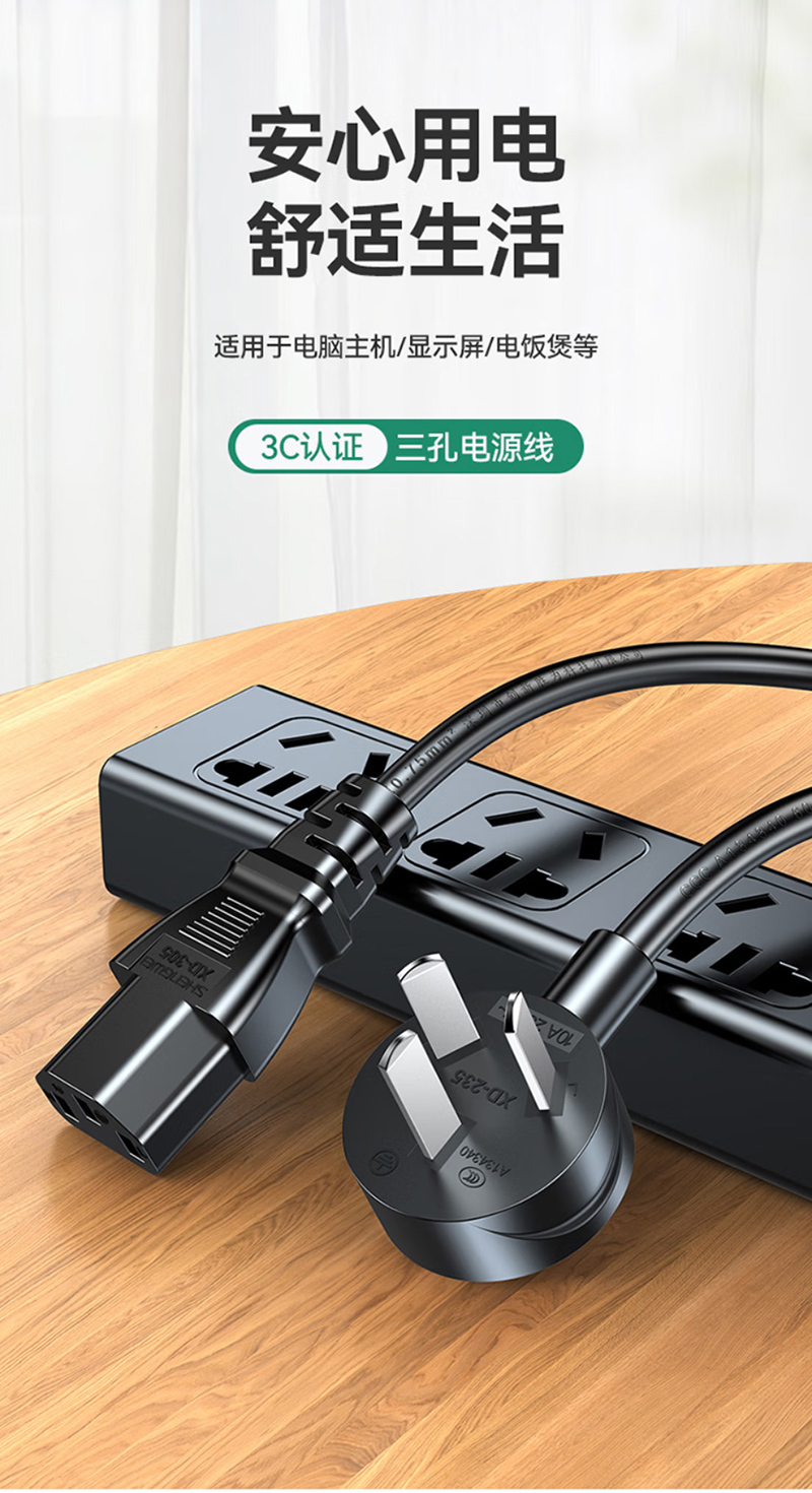5米/条5m黑色电源线条SHENGWEI/胜为国标三插针对品字尾孔电源线APT0050G-3×0.75mm² 5m