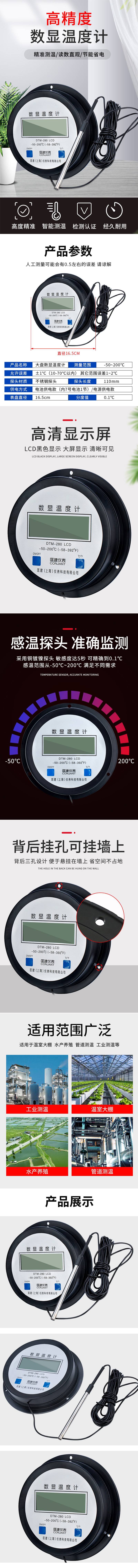 -50~200℃165mm径向1%10mm无螺纹不锈钢110mm无CONJANT/匡建仪表大盘数显温度计DTM-280--50~200℃(5m线)