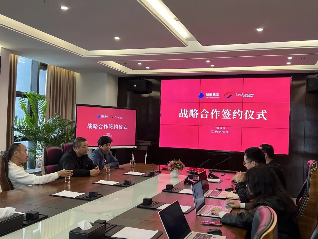 筑通公司总经理江志高携供应链部同事、乐佳总经理林长忠等一行代表出席会议。双方就集采服务、供应模式等业务展开了友好的合作交流,并签署了合作协议。