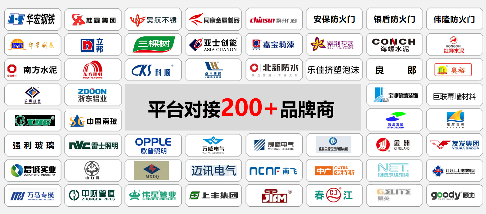 平台涵盖了装配式建筑、土建、电气、装饰、给排水、消防工程、暖通、市政、园林绿化、仿古材料、其他材料、工程机械设备等类目,有效降低上下游沟通成本,为建筑企业降本提效,为供应商提供更多商机,以达到双方共同发展,为建筑企业和供应商赋能。